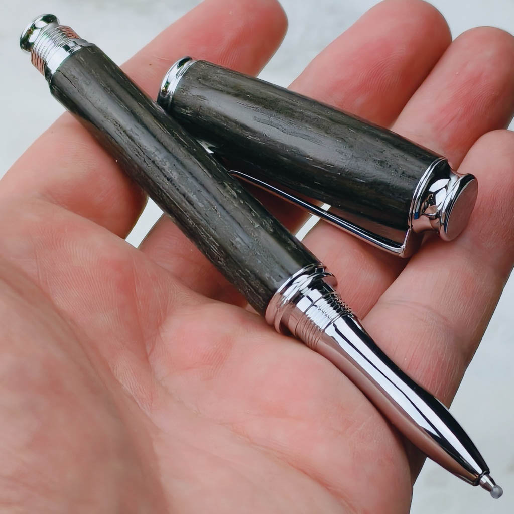 Dřevěné pero ze subfosilního (bahenního) dubu patří mezi má nejoblíbenější pera. Jedinečnou strukturu tohoto dřeva oceníte při každé příležitosti.