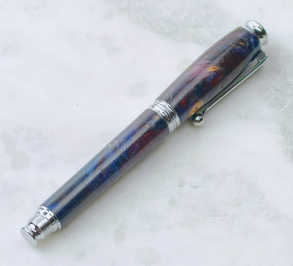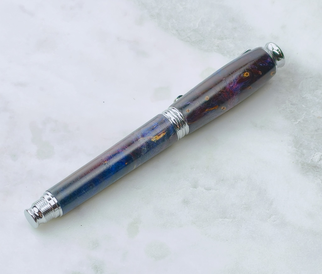 Na většinu per lze gravírovat. Bohužel se najdou i taková pera, která neumožňují vypálit požadovaný monogram/jméno. Jsou to u vás oblíbená pera z šišky. Šiška je ponořena do epoxidové pryskyřice, která má určitý bod tání. Pokud bych na ni pustil laser, neměl by se paprsek, kde chytit a pero by se pravděpodobně začalo tavit.