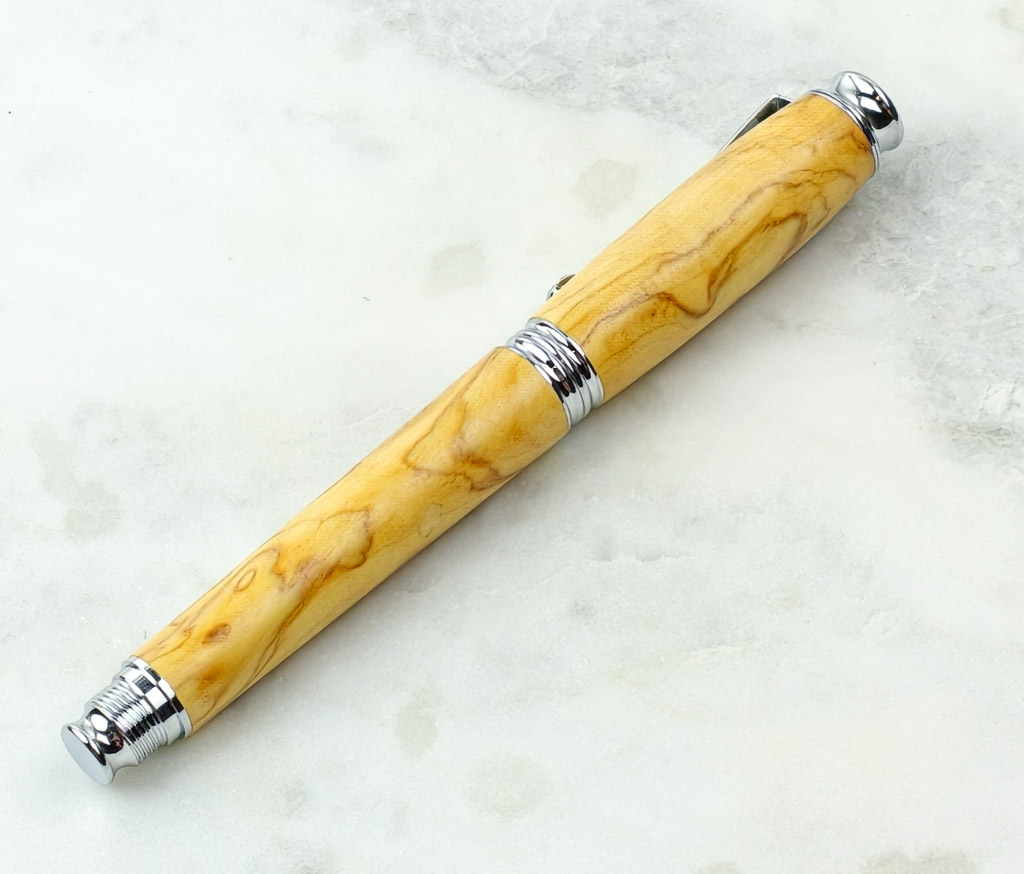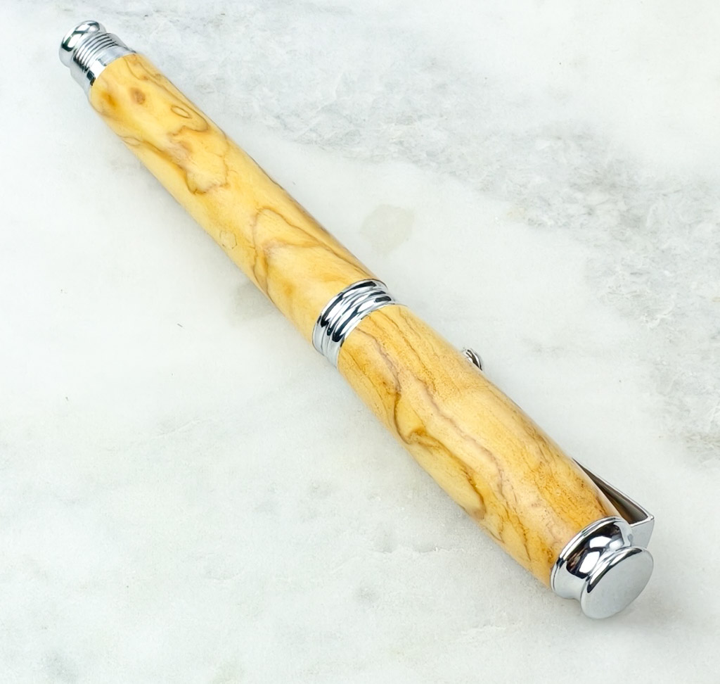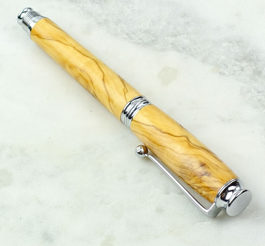 Dřevěné pero z olivy, které jsem nechal dovést přímo z Betléma. Zvláštností je, že nebyl kvůli tomu peru pokácen ani jeden strom. Dřevo pochází z průřezu oliv. Na pero lze vypálit dle libosti iniciály, jména, důležité data. Ke každému peru z olivy obdržíte certifikát pravosti dřeva přímo z Betlehéma. Pero, které vidíte skutečně kupujete. Jedná se VIP edici per z nejvyšší jakosti od mého dodavatel. Oboustranně prokreslené pero.