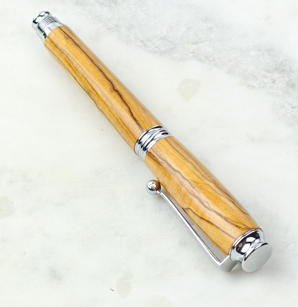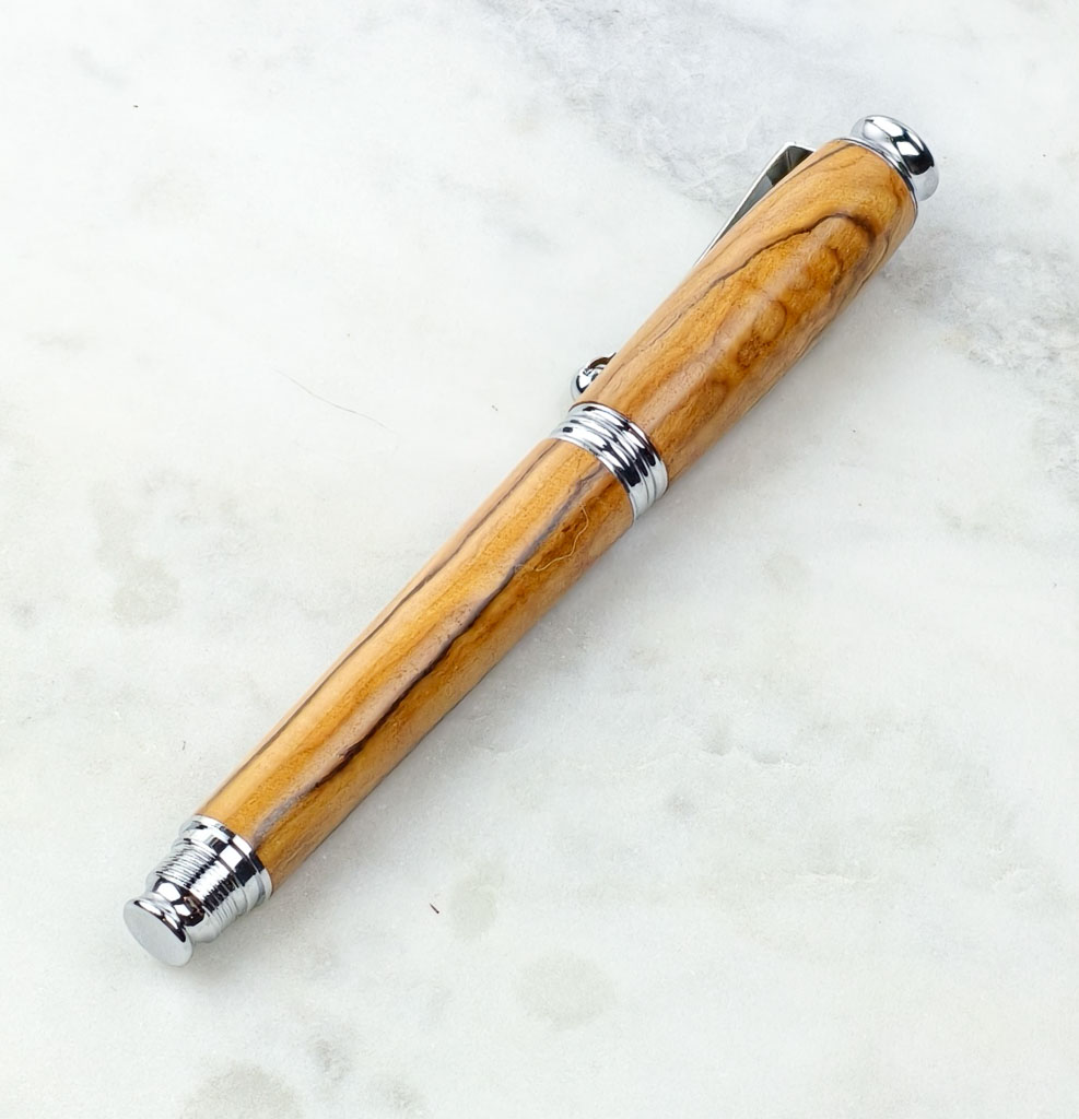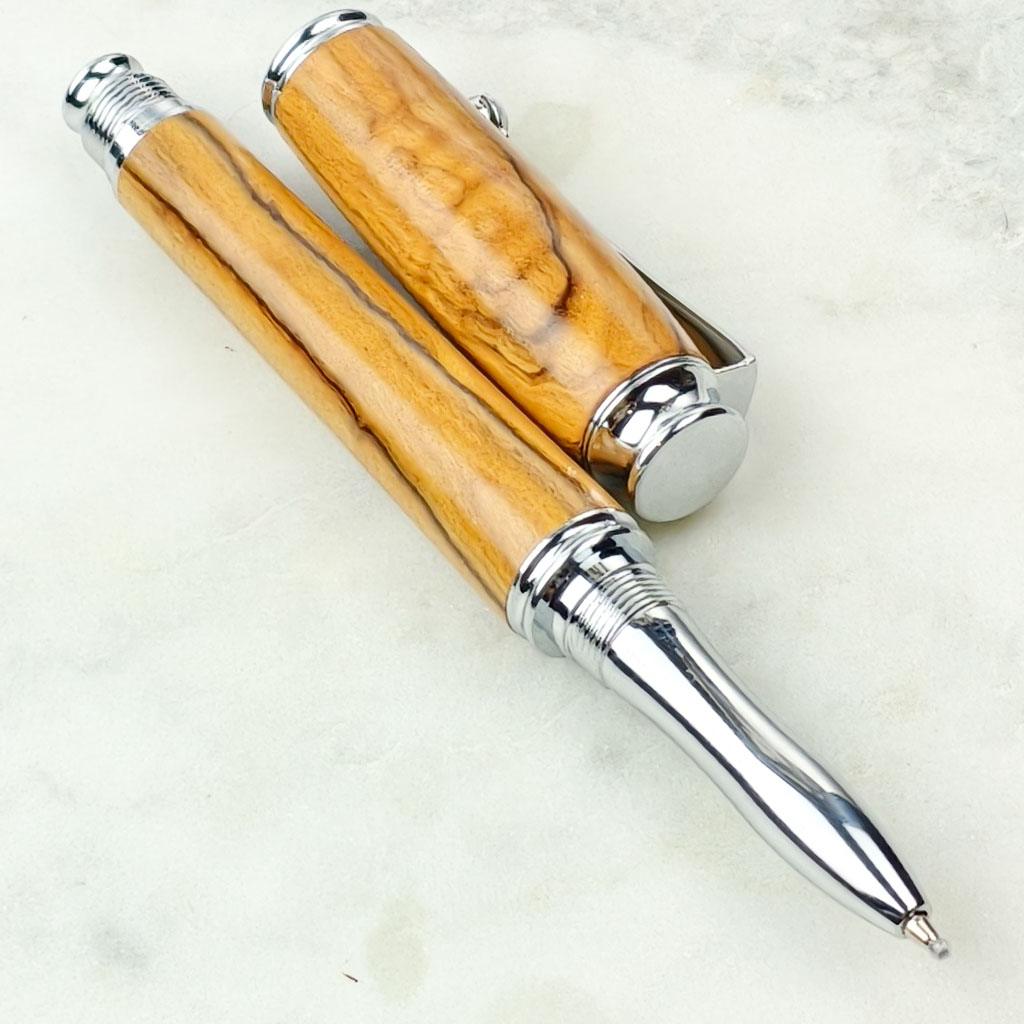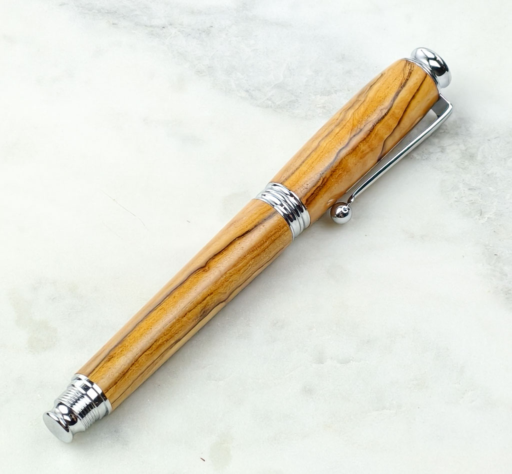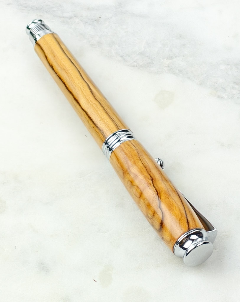 Dřevěné pero z olivy, které jsem nechal dovést přímo z Betléma. Zvláštností je, že nebyl kvůli tomu peru pokácen ani jeden strom. Dřevo pochází z průřezu oliv. Na pero lze vypálit dle libosti iniciály, jména, důležité data. Ke každému peru z olivy obdržíte certifikát pravosti dřeva přímo z Betlehéma. Pero, které vidíte skutečně kupujete. Jedná se VIP edici per z nejvyšší jakosti od mého dodavatel. Oboustranně prokreslené pero.