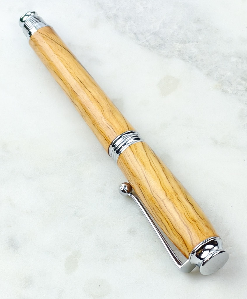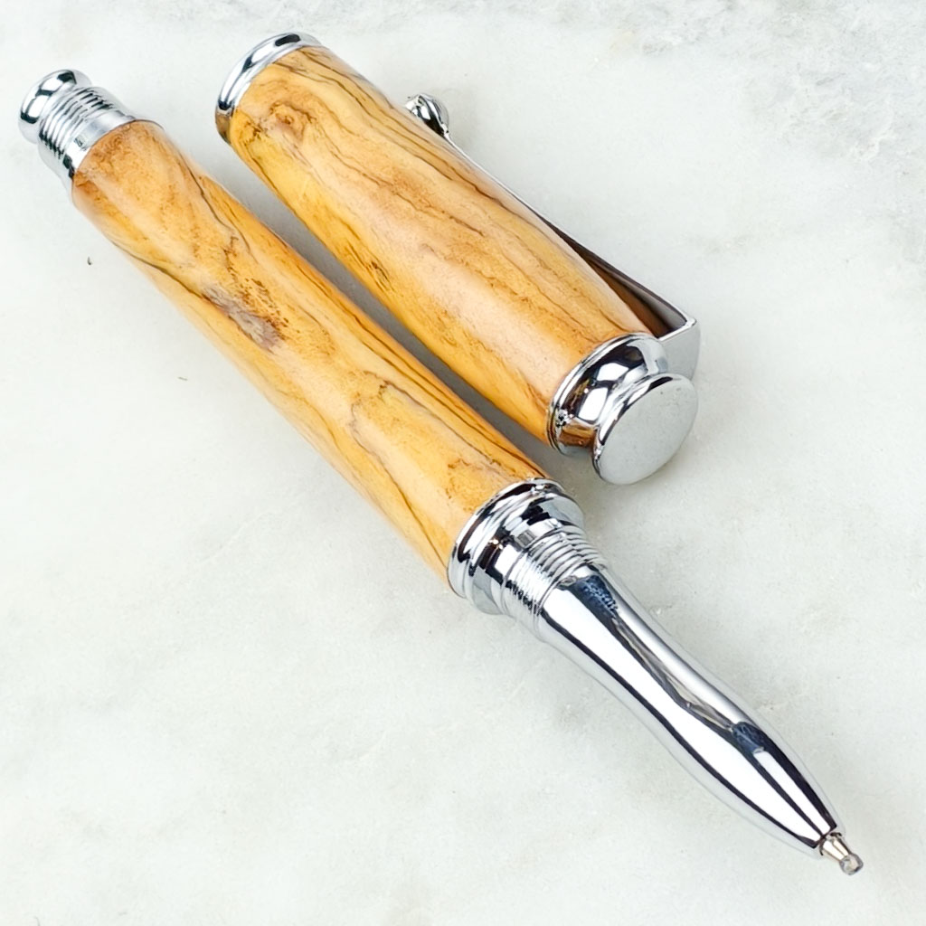 Dřevěné pero z olivy, které jsem nechal dovést přímo z Betléma. Zvláštností je, že nebyl kvůli tomu peru pokácen ani jeden strom. Dřevo pochází z průřezu oliv. Na pero lze vypálit dle libosti iniciály, jména, důležité data. Ke každému peru z olivy obdržíte certifikát pravosti dřeva přímo z Betlehéma. Pero, které vidíte skutečně kupujete. Jedná se VIP edici per z nejvyšší jakosti od mého dodavatel. Oboustranně prokreslené pero.