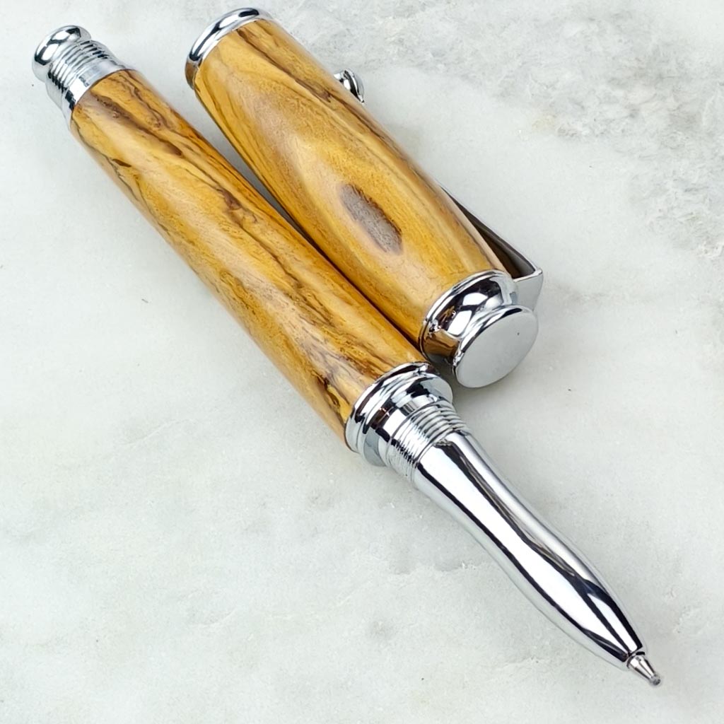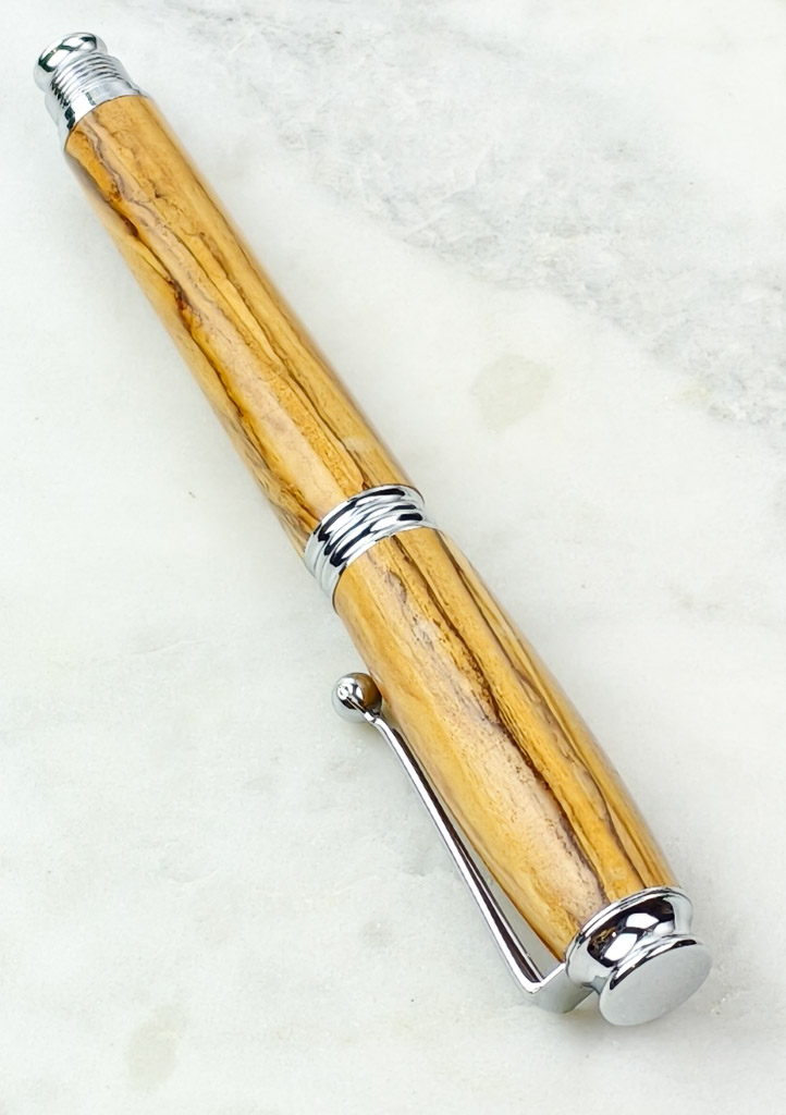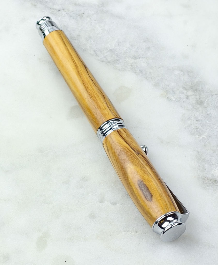 Dřevěné pero z olivy, které jsem nechal dovést přímo z Betléma. Zvláštností je, že nebyl kvůli tomu peru pokácen ani jeden strom. Dřevo pochází z průřezu oliv. Na pero lze vypálit dle libosti iniciály, jména, důležité data. Ke každému peru z olivy obdržíte certifikát pravosti dřeva přímo z Betlehéma. Pero, které vidíte skutečně kupujete. Jedná se VIP edici per z nejvyšší jakosti od mého dodavatel. Oboustranně prokreslené pero.