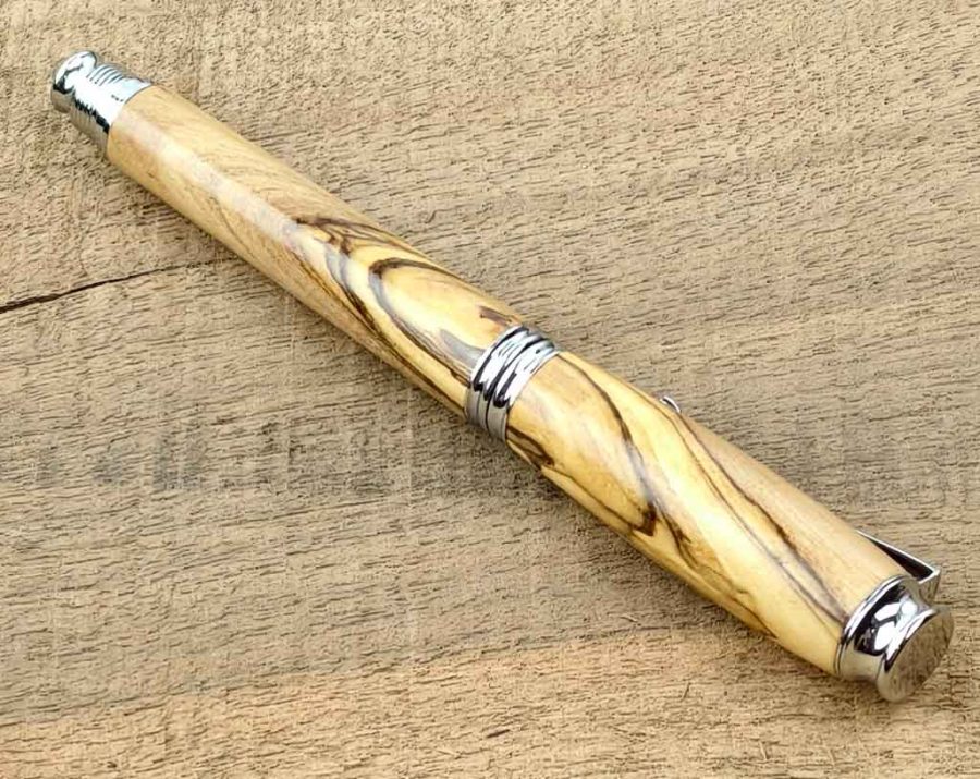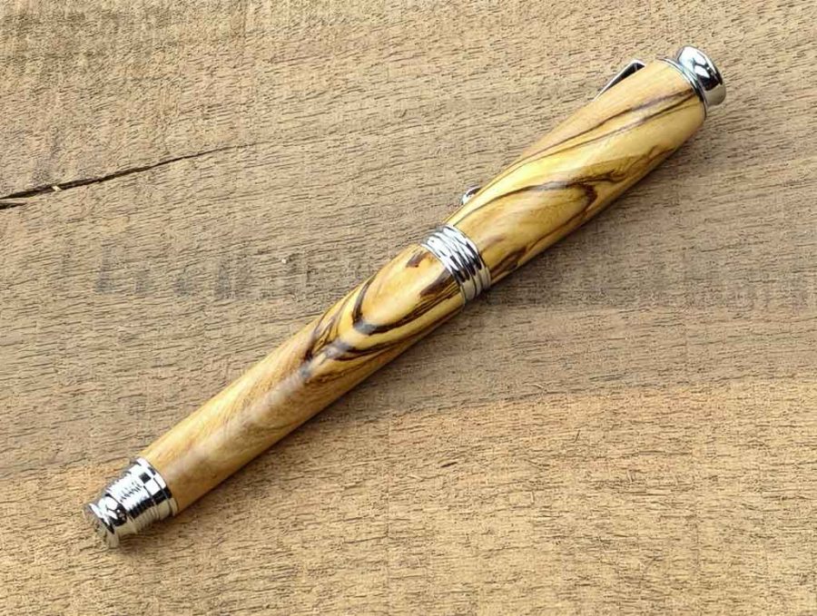 Dřevěné pero z olivy, které jsem nechal dovést přímo z Betléma. Zvláštností je, že nebyl kvůli tomu peru pokácen ani jeden strom. Dřevo pochází z průřezu oliv. Na pero lze vypálit dle libosti iniciály, jména, důležité data. Ke každému peru z olivy obdržíte certifikát pravosti dřeva přímo z Betlehéma. Pero, které vidíte skutečně kupujete. Jedná se VIP edici per z nejvyšší jakosti od mého dodavatel. Oboustranně prokreslené pero.