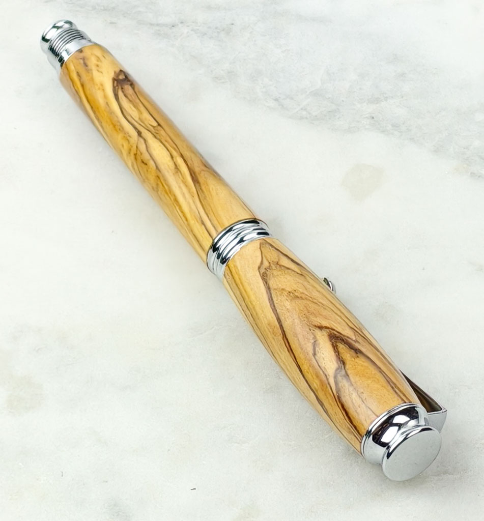 Dřevěné pero z olivy, které jsem nechal dovést přímo z Betléma. Zvláštností je, že nebyl kvůli tomu peru pokácen ani jeden strom. Dřevo pochází z průřezu oliv. Na pero lze vypálit dle libosti iniciály, jména, důležité data. Ke každému peru z olivy obdržíte certifikát pravosti dřeva přímo z Betlehéma. Pero, které vidíte skutečně kupujete. Jedná se VIP edici per z nejvyšší jakosti od mého dodavatel. Oboustranně prokreslené pero.