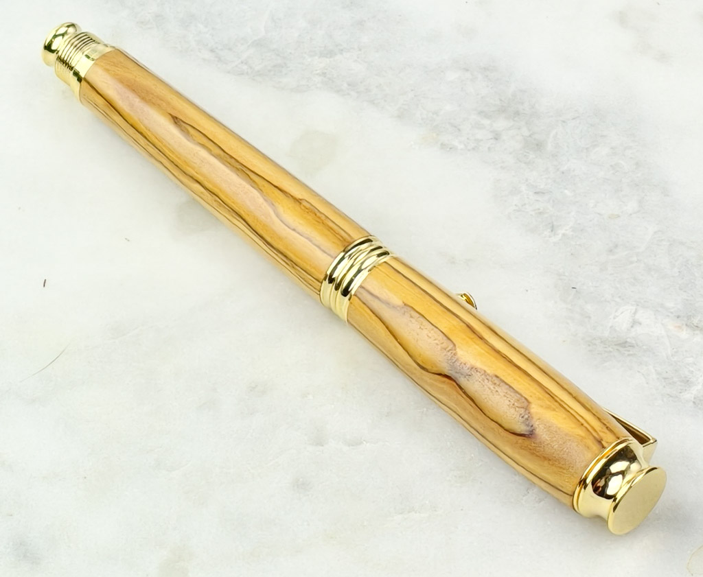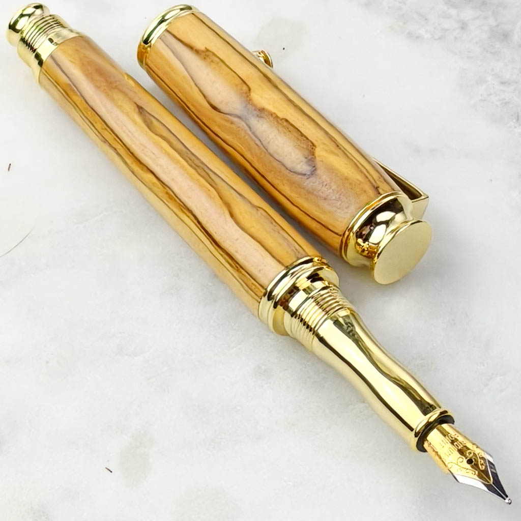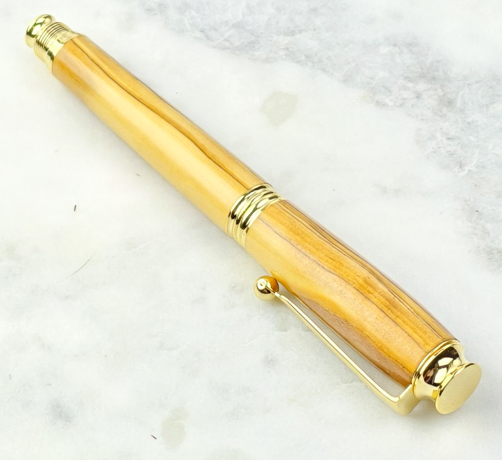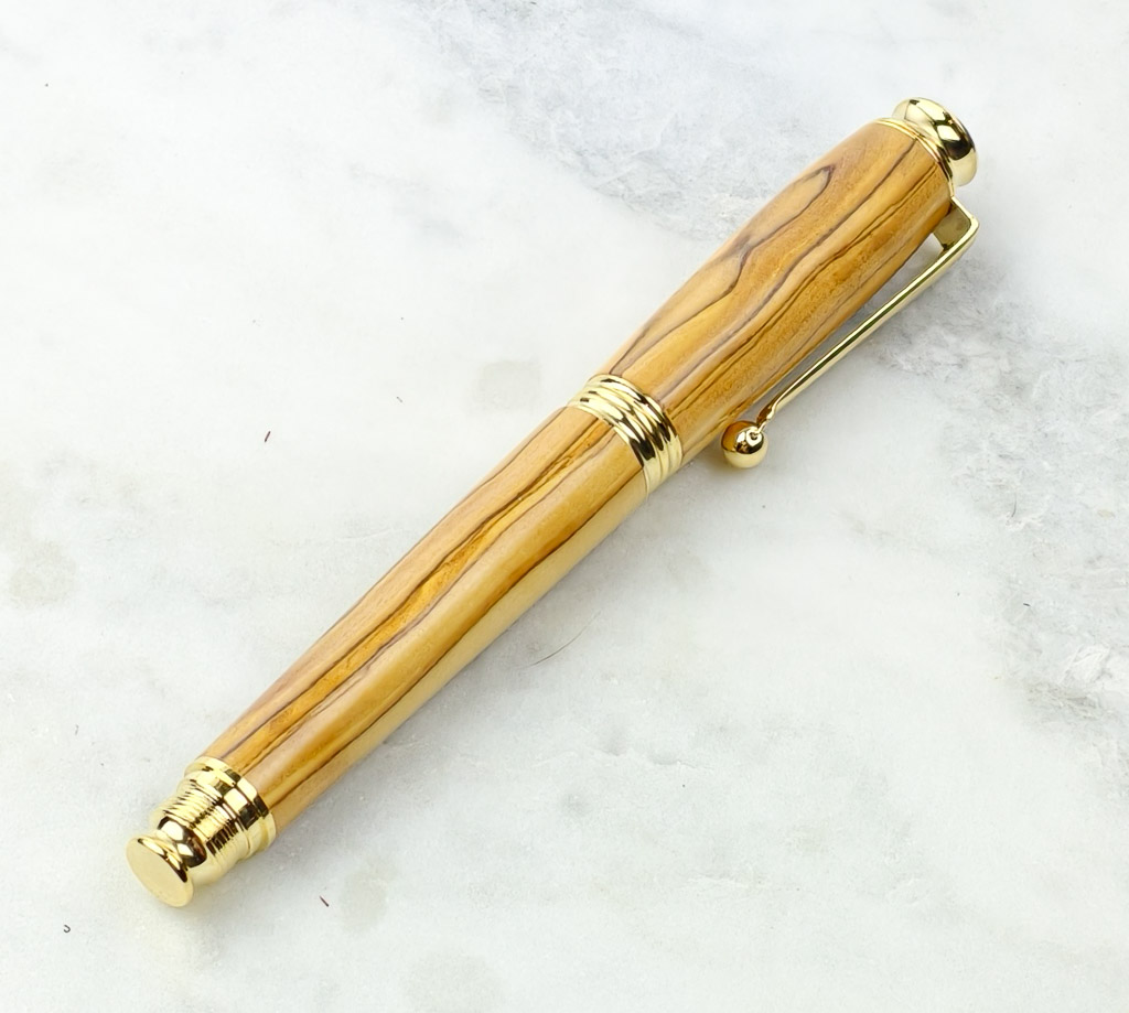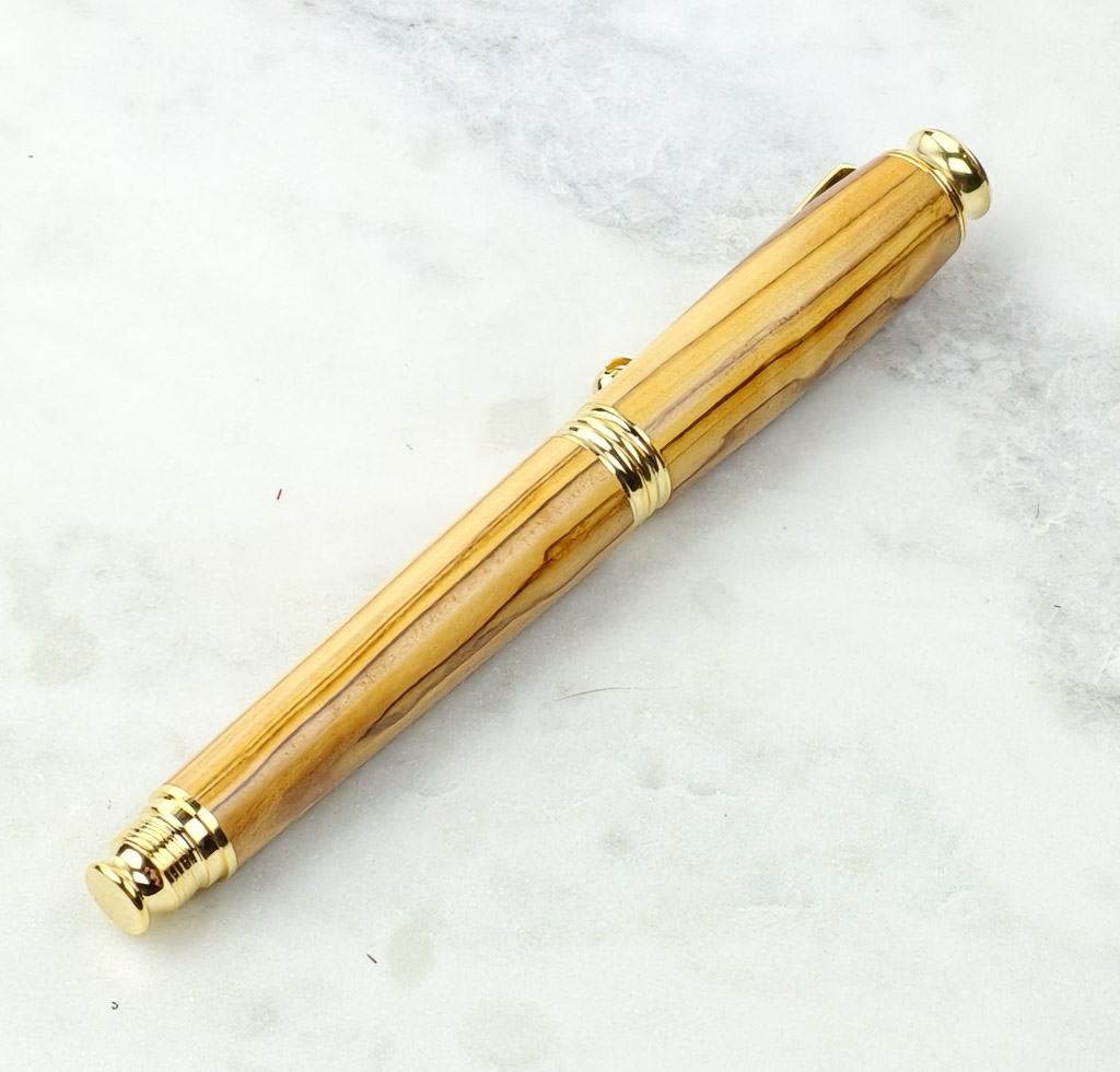 Plnicí pero z olivového dřeva, které jsem nechal dovést z Betléma. Dřevo prochází z průřezů oliv, který se dělá každoročně a tak nemusel být pokácen ani jediný strom. K peru náleží certifikát pravosti od dodavetele (v AJ) + certifikát ode mne.