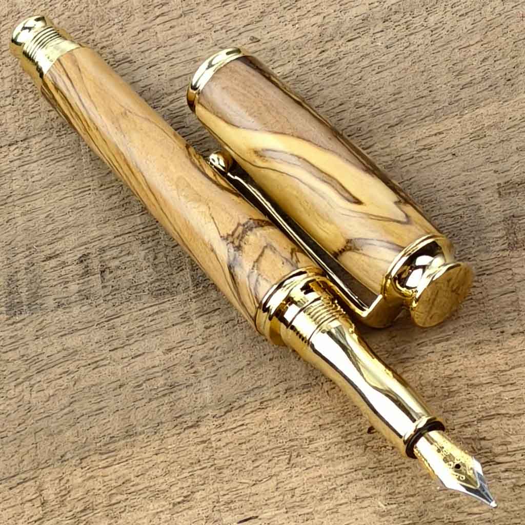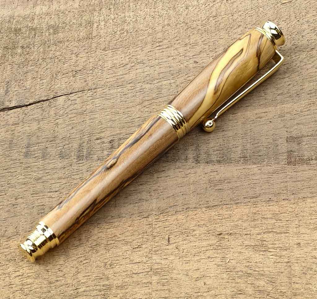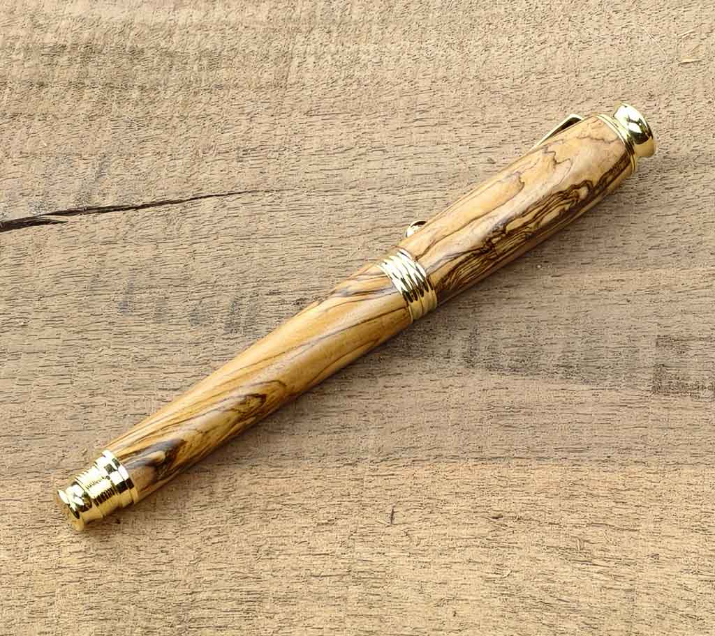 Plnicí pero z olivového dřeva, které jsem nechal dovést z Betléma. Dřevo prochází z průřezů oliv, který se dělá každoročně a tak nemusel být pokácen ani jediný strom. K peru náleží certifikát pravosti od dodavetele (v AJ) + certifikát ode mne.