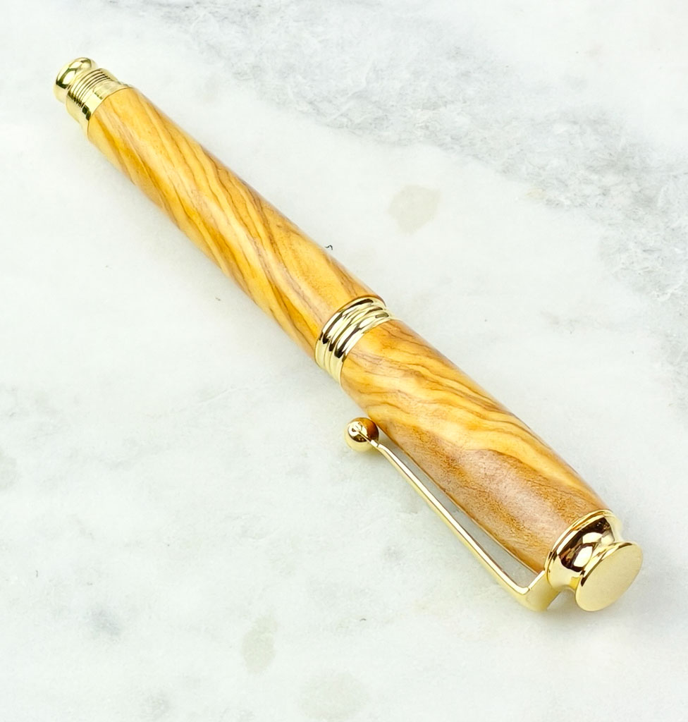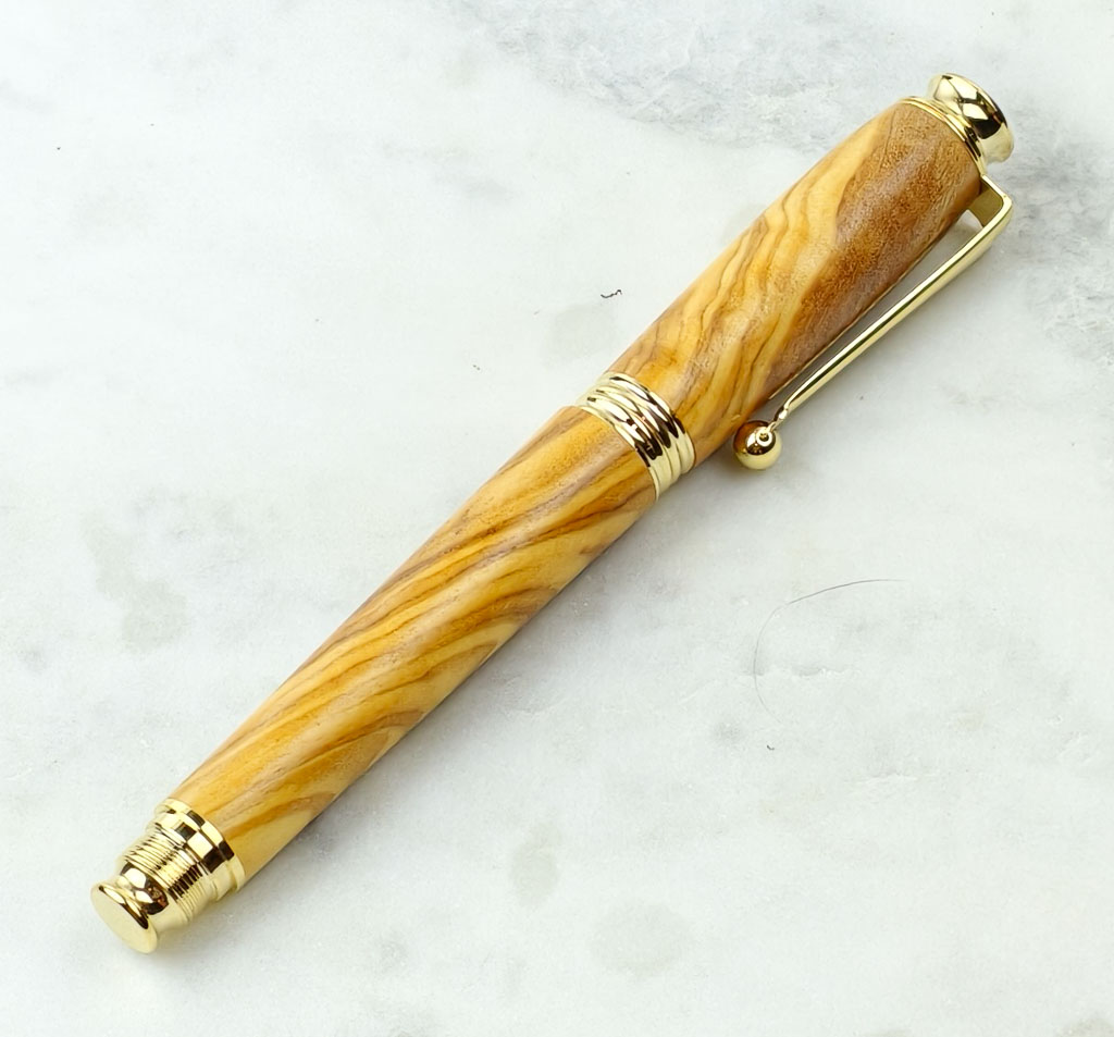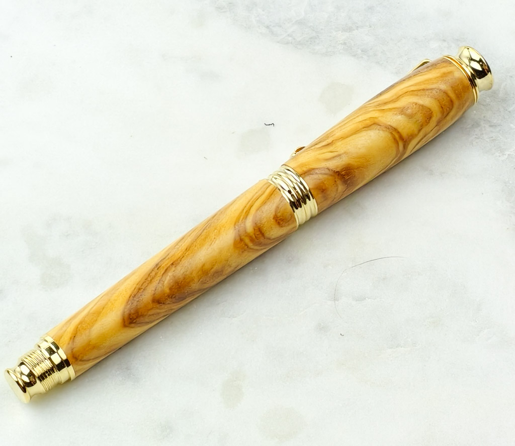 Plnicí pero z olivového dřeva, které jsem nechal dovést z Betléma. Dřevo prochází z průřezů oliv, který se dělá každoročně a tak nemusel být pokácen ani jediný strom. K peru náleží certifikát pravosti od dodavetele (v AJ) + certifikát ode mne.
