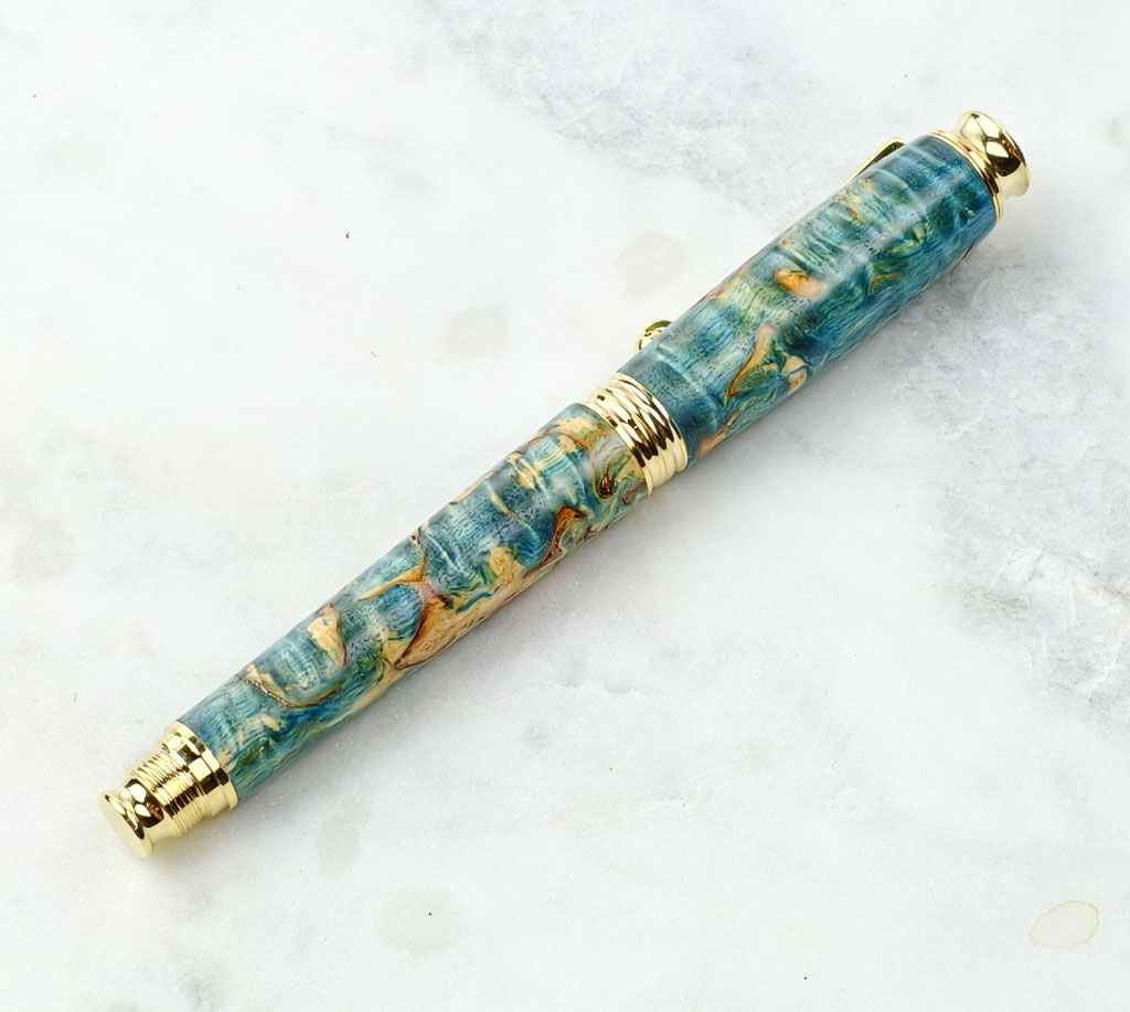 Na většinu per lze gravírovat. Bohužel se najdou i taková pera, která neumožňují vypálit požadovaný monogram/jméno. Jsou to u vás oblíbená pera z šišky. Šiška je ponořena do epoxidové pryskyřice, která má určitý bod tání. Pokud bych na ni pustil laser, neměl by se paprsek, kde chytit a pero by se pravděpodobně začalo tavit.